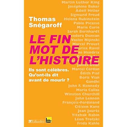 Ils sont célèbres. Qu’ont-ils dit avant de mourir ? Le Fin mot de l’histoire est à l’origine une série de chroniques diffusées pendant l’été sur France Info. Jamais anodines, souvent émouvantes, parfois grinçantes, ces ultimes paroles mises en scène par la plume alerte de Thomas Snégaroff sont autant de courtes biographies. De John F. Kennedy à John Lennon en passant par Marie Curie, Martin Luther King et Édith Piaf, on s’instruit, on sourit, on s’étonne en traversant l’histoire du XXe siècle.